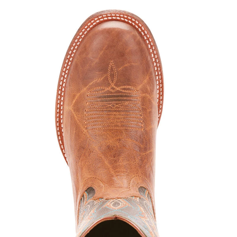 The competition is on in this boot that blends fast, vibrant design with a traditional leather outsole and Ariat’s patented support and cushioning.Â